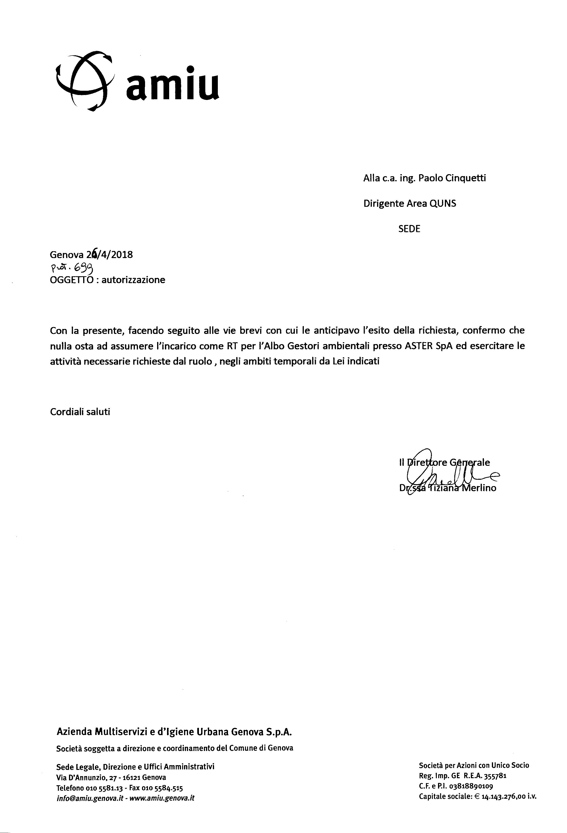 - Incarico: Assistenza nel passaggio cespiti della società Finale Ambiente SpA nell’ambito del nuovo affidamento del contratto di servizio